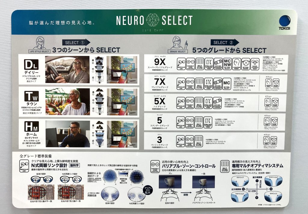 レンズの種類も遠近両用・お家用・パソコン用・将棋用・釣り用など多種多様ありますので見え方の違いを是非体験してみて下さい。
